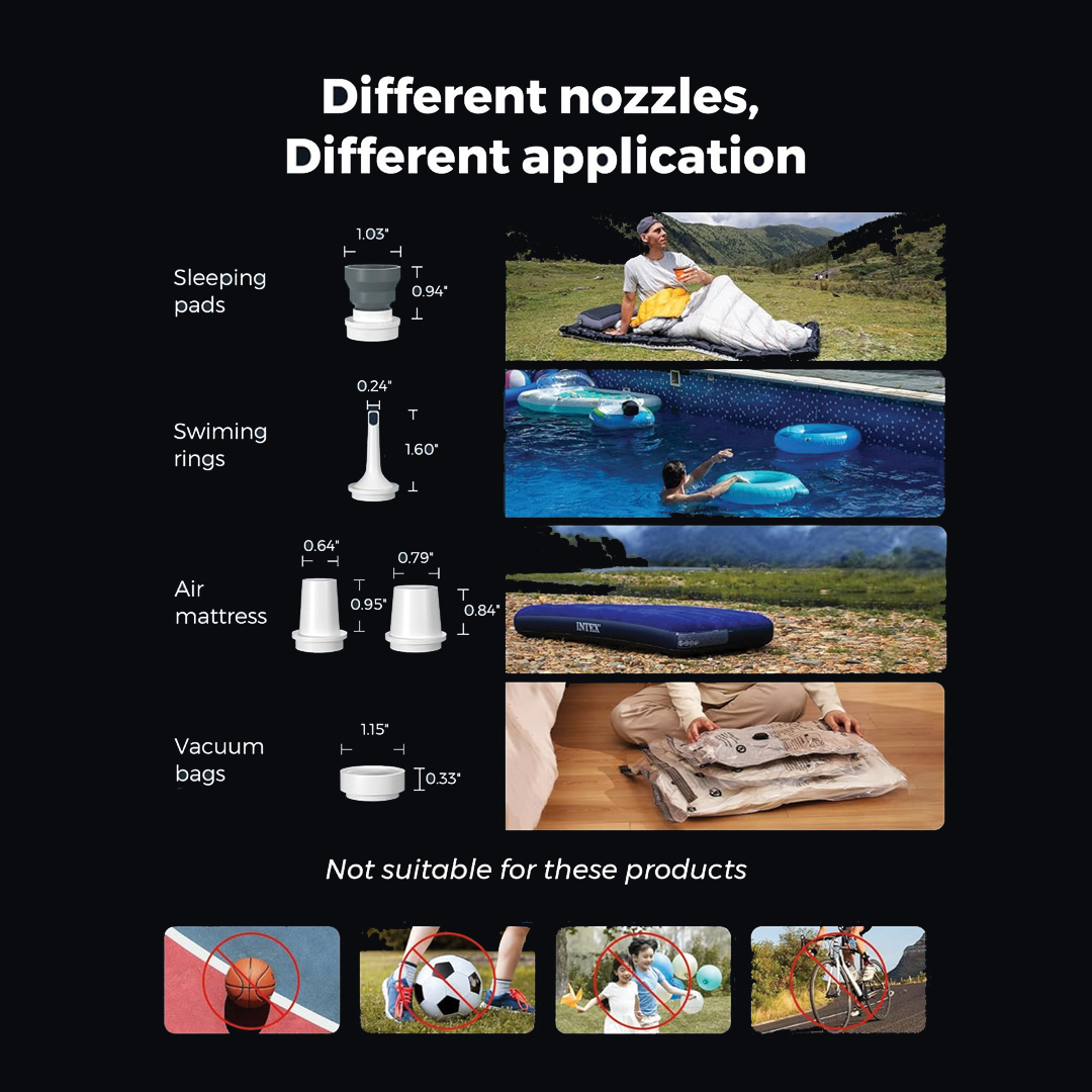 • What's in the box: 1 x Max Pump 2 Plus, 5 x Nozzles, 1 x USB Cable, 1 x Manual, 1 x Storage Bag