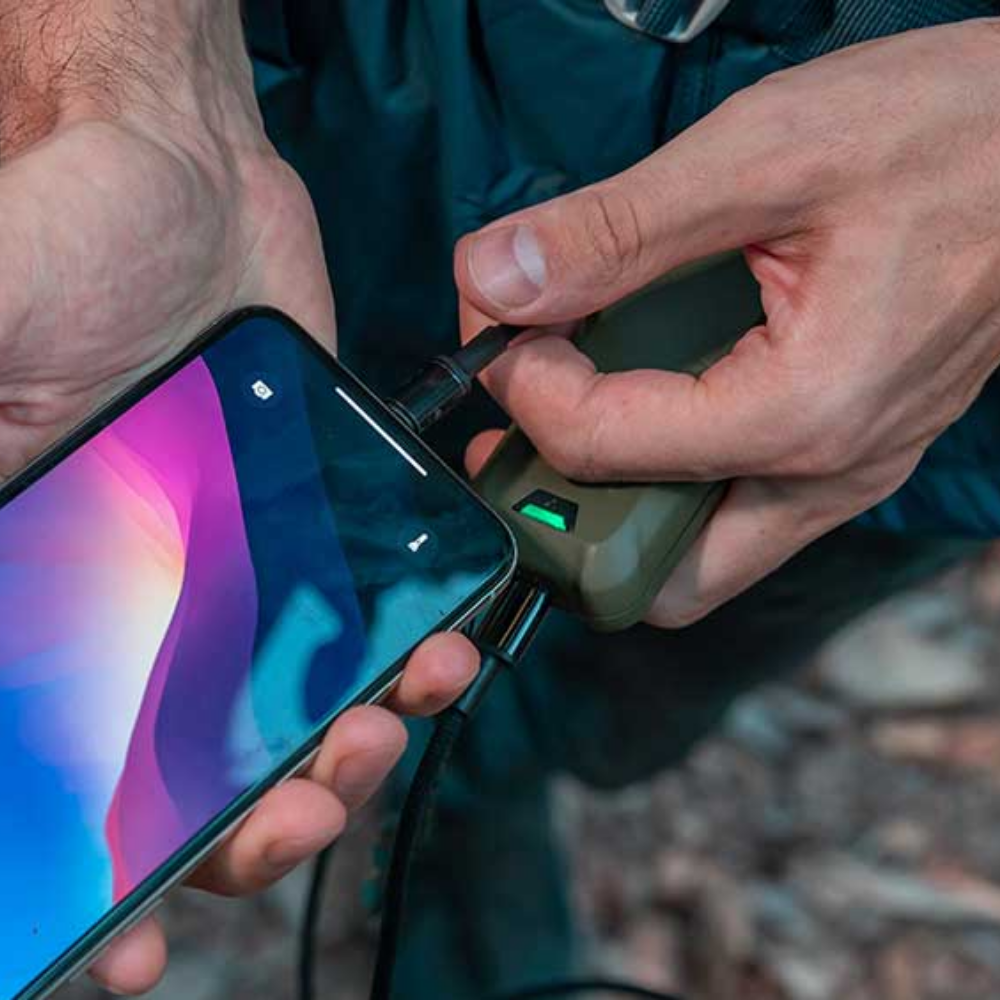• Two modes: outdoor and camping. Activate by double-clicking power button.