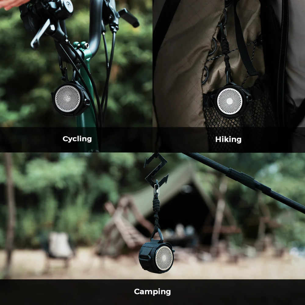 Featuring a full-metail mini design and functional outdoor strap, it activates with a single click and offers 5-33 hours of playtime on a single charge. The Tiny Speaker is a perfect musical companion for both day adventures and relaxing nights.