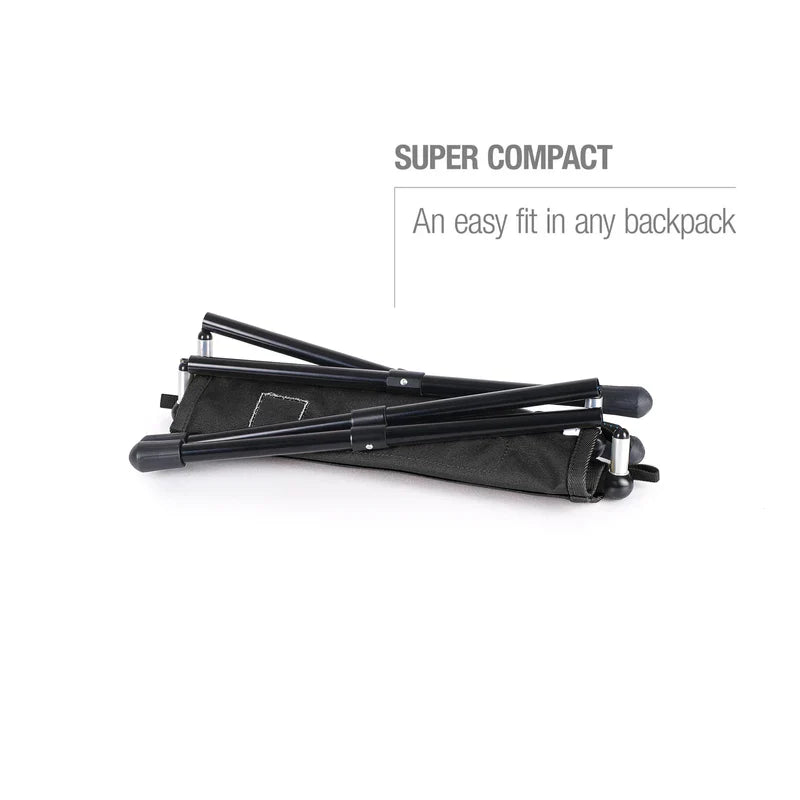 • Collapsible frame fits into a lightweight 43cm x 8.5cm x 8.5cm cinch bag and is small enough to stash into the side pocket of your backpack.