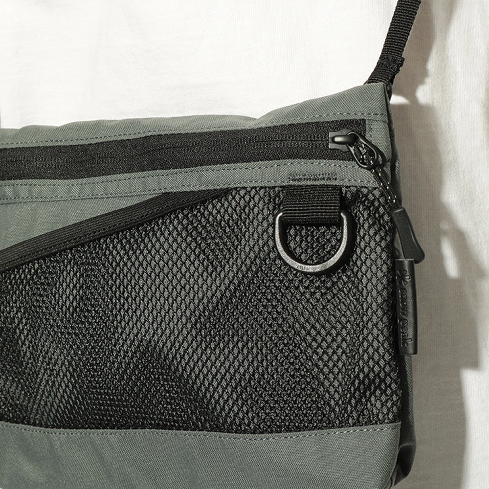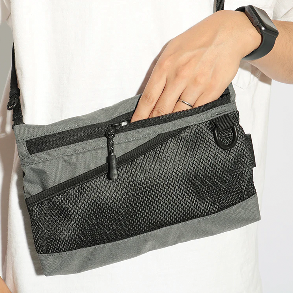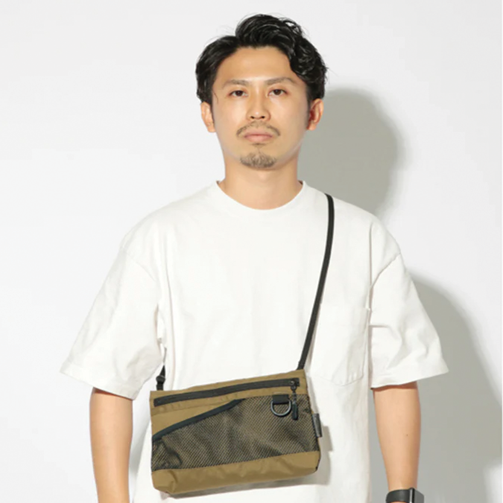 The Everyday Sacoche is a small crossbody bag. Made from 100% nylon with capacity of 0.7L, it features an external mesh pocket, an adjustable shoulder strap, a D-ring, and a small internal pocket.